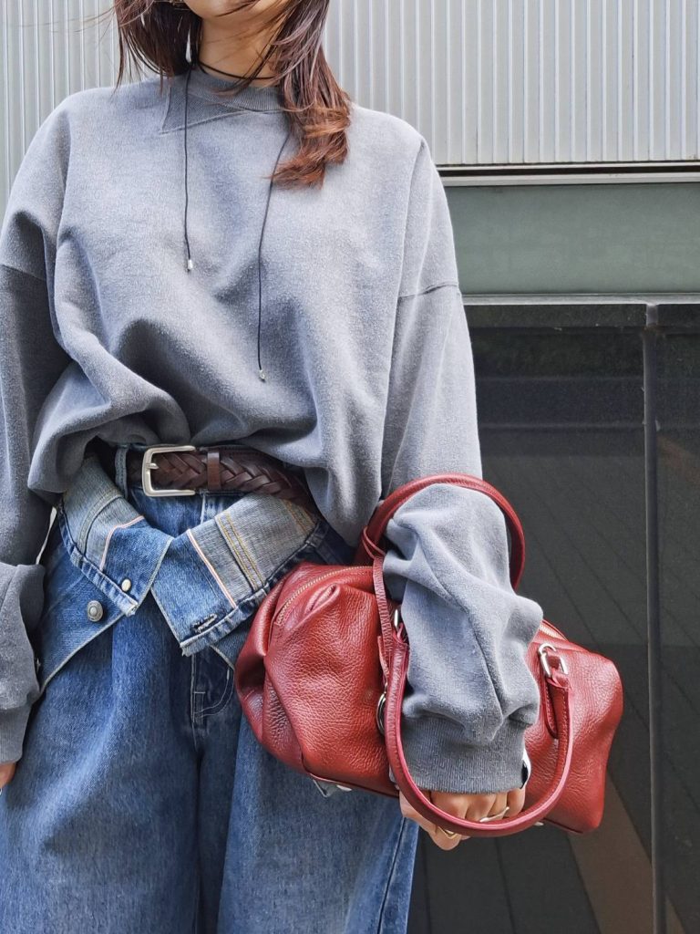 レザーとのコンビでラフになりすぎず、上品感のあるデザイン。