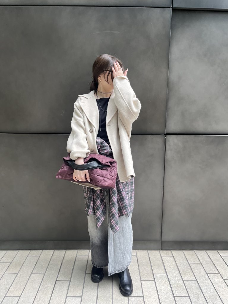 ミニ財布やスマートフォン、化粧品が入るサイズ感。