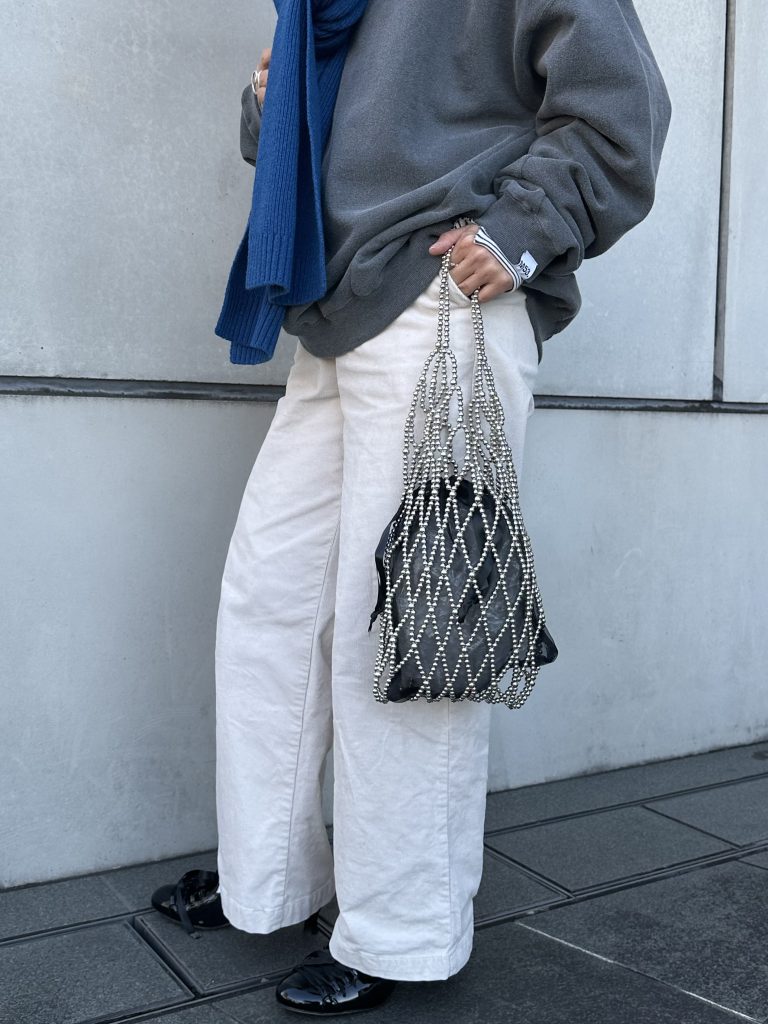トフアンドロードストーンならではの凛とした佇まいで、巾着バッグでもぐっと上品な印象に。