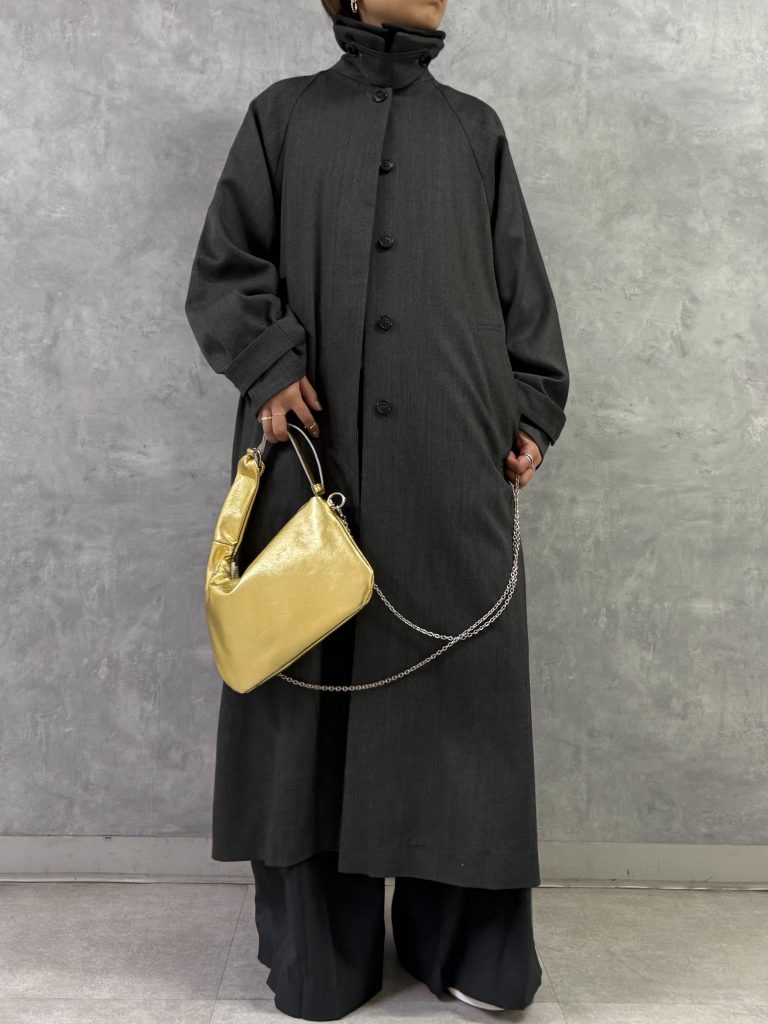 前から見るとシンプルですが、後ろは素材違いのプリーツになっていて甘すぎないデザインです。