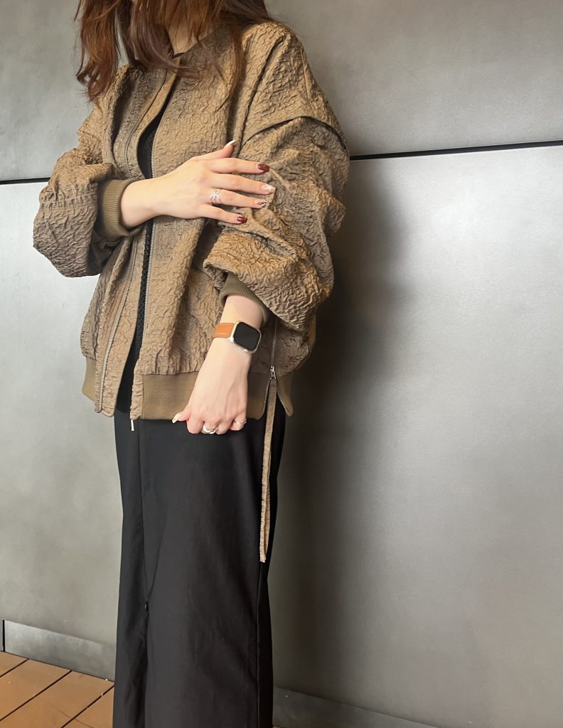 ワッシャー加工がおしゃれな生地感で、周りとも差がつくアウターです!