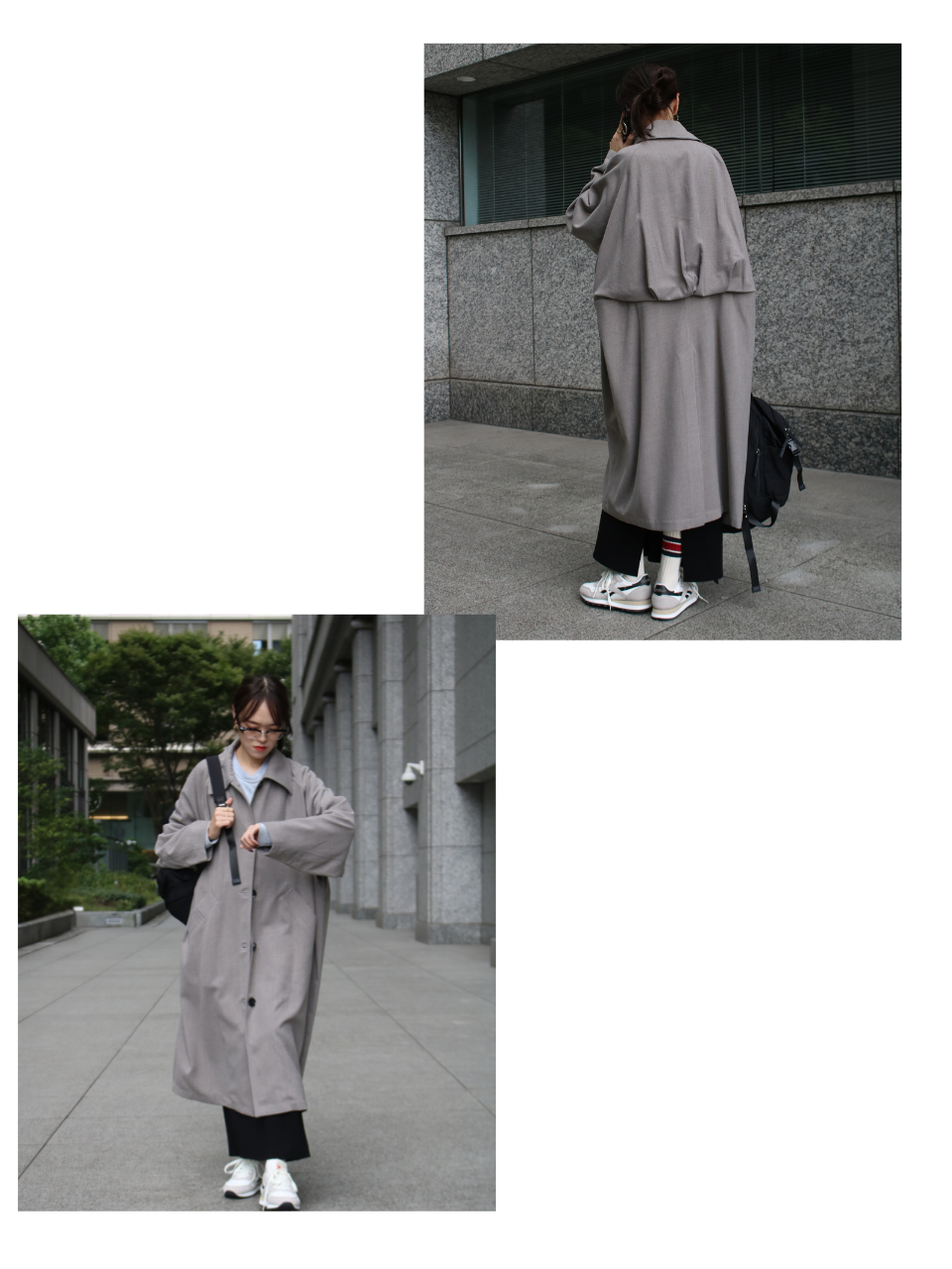 STYLE 1:【都会派ハンサム】スマートな機動力を叶える「コート×ダッドスニーカー」