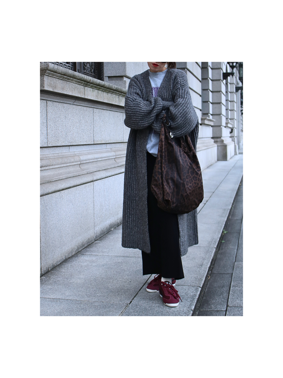STYLE 2:【リラックスモード】深みのある配色で遊ぶ「ニットカーデ×レトロスニーカー」