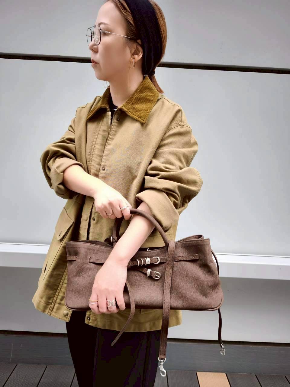 【MARGE SHERWOOD/マージシャーウッド】1999年公開の映画「リプリー」の登場人物である、ディッキー・グリーンリーフの恋人「マージ・シャーウッド」がモチーフとなっている韓国発のバッグブランド”マージシャーウッド”。映画の他にアートや音楽からインスピレーションを受けた優雅で洗練されたデザインや、ヴィンテージテイストなカラーリングが特徴。 角に丸みを持たせたフォルムやすっきりとしたシルエット、肩に掛けやすい長さのハンドルなど実用性も兼ね備え、多様なファッションスタイルの人々に愛用されている。