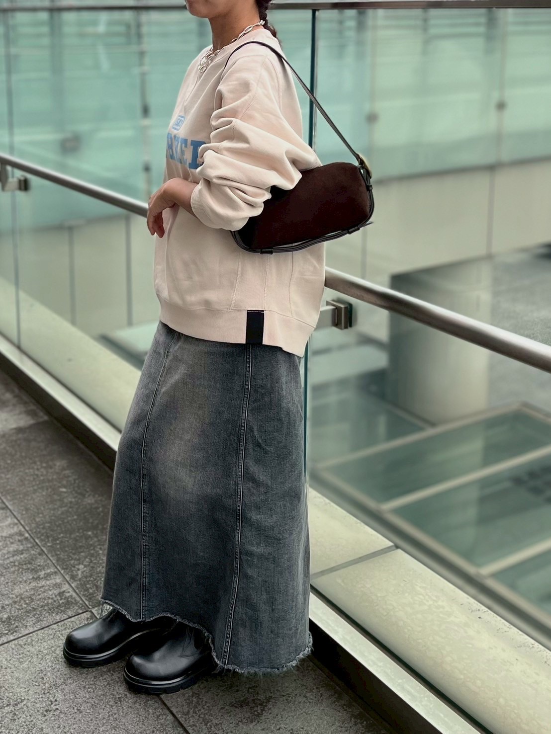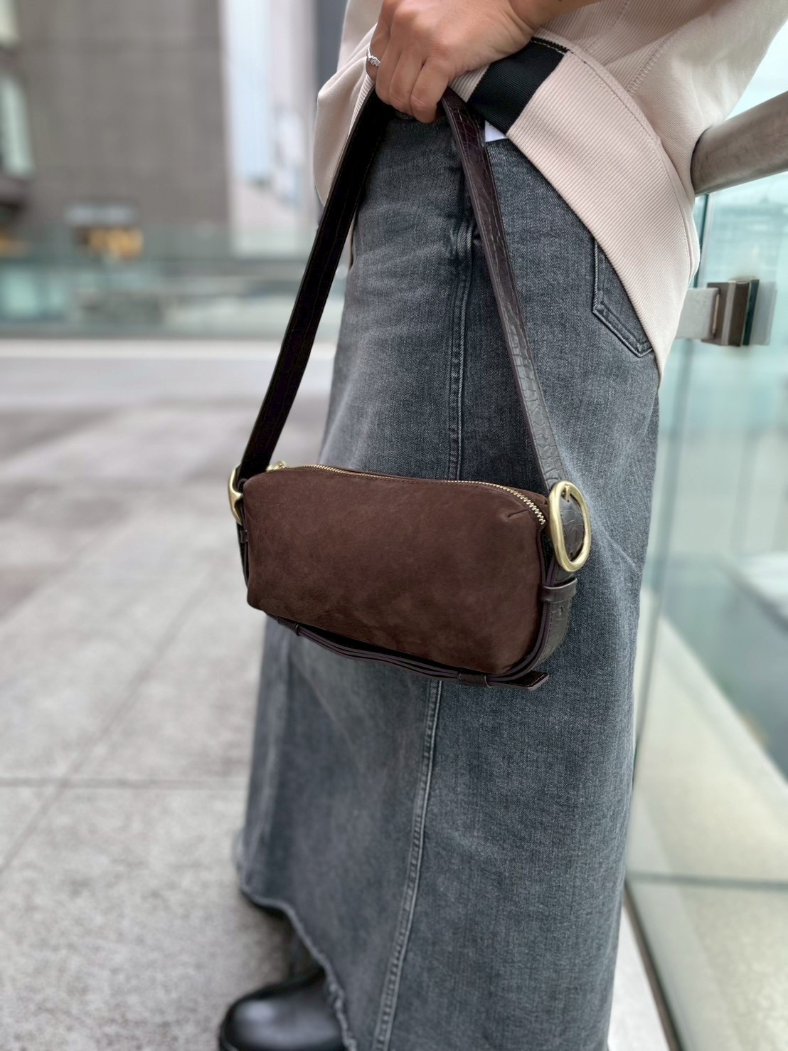 マットな質感のレザーが秋冬の暖かいスタイリングにマッチします。