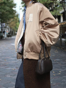 カジュアルすぎず、スカートやワンピースとのミックススタイルにも馴染みます。