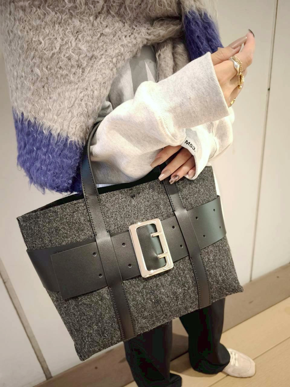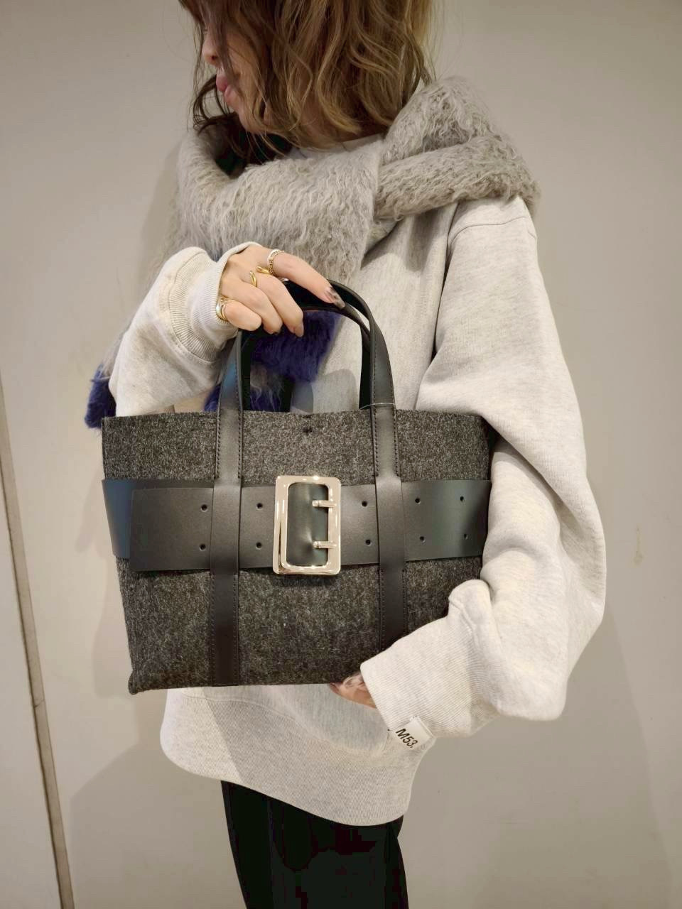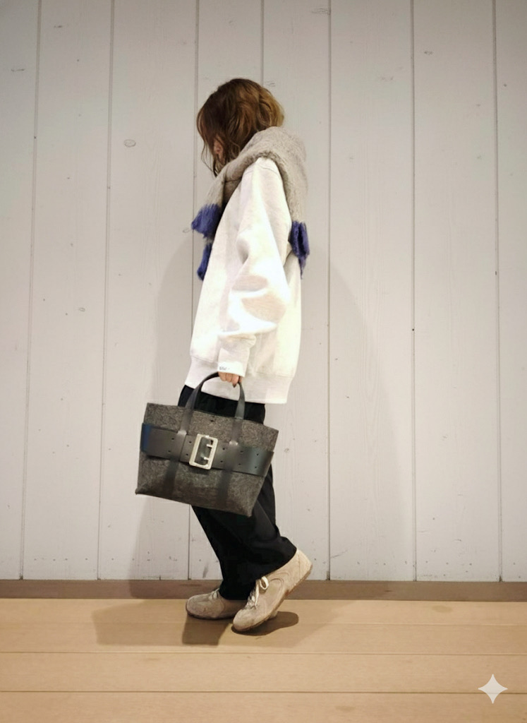 【atneK】メルトンワイドベルトトート