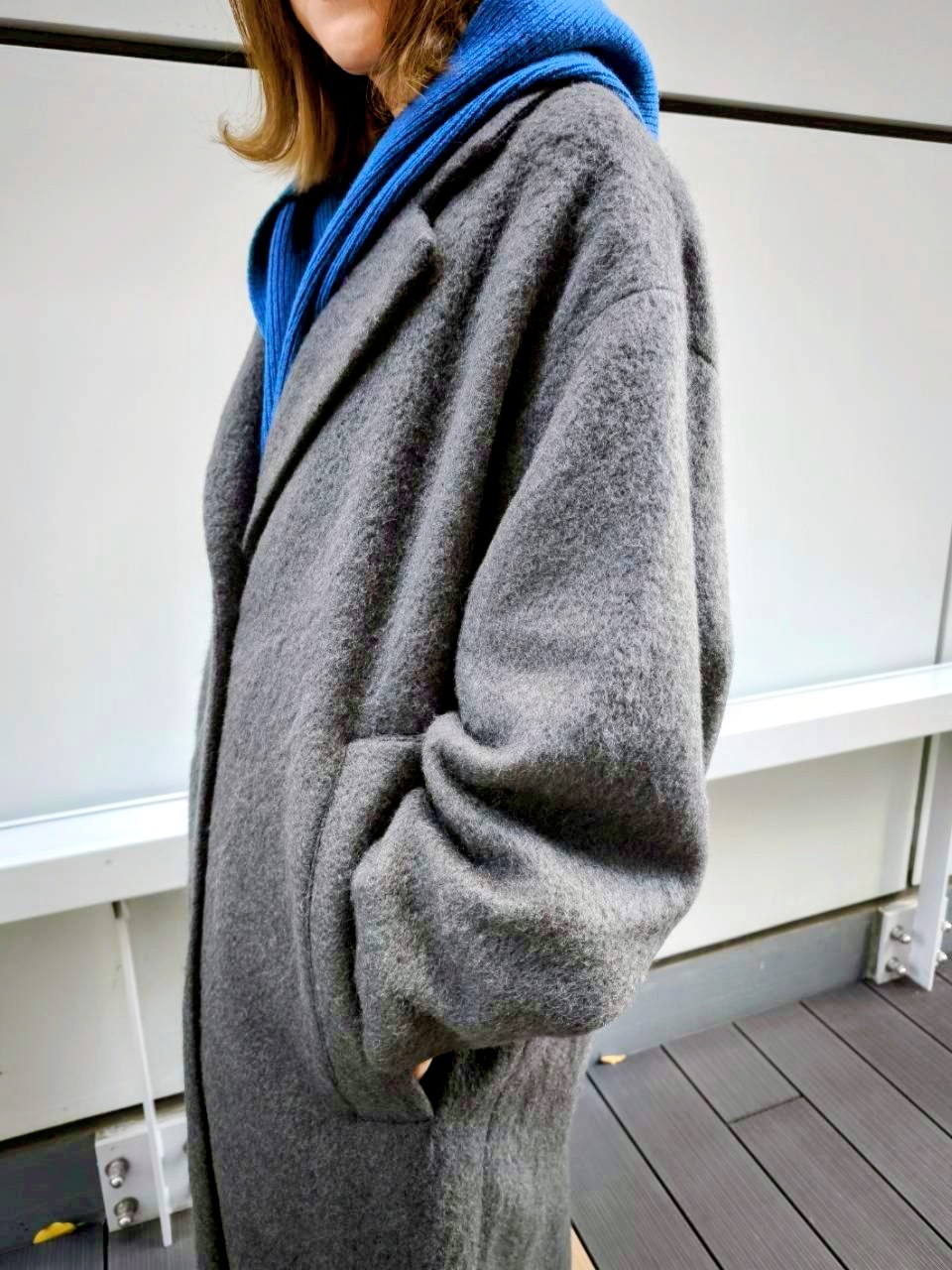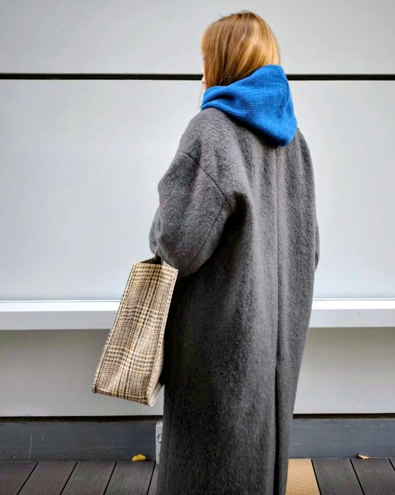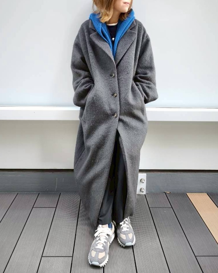シンプルなコートに付け襟っぽいアクセントとして巻いても◎