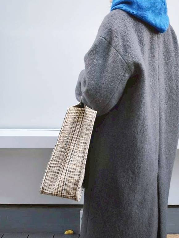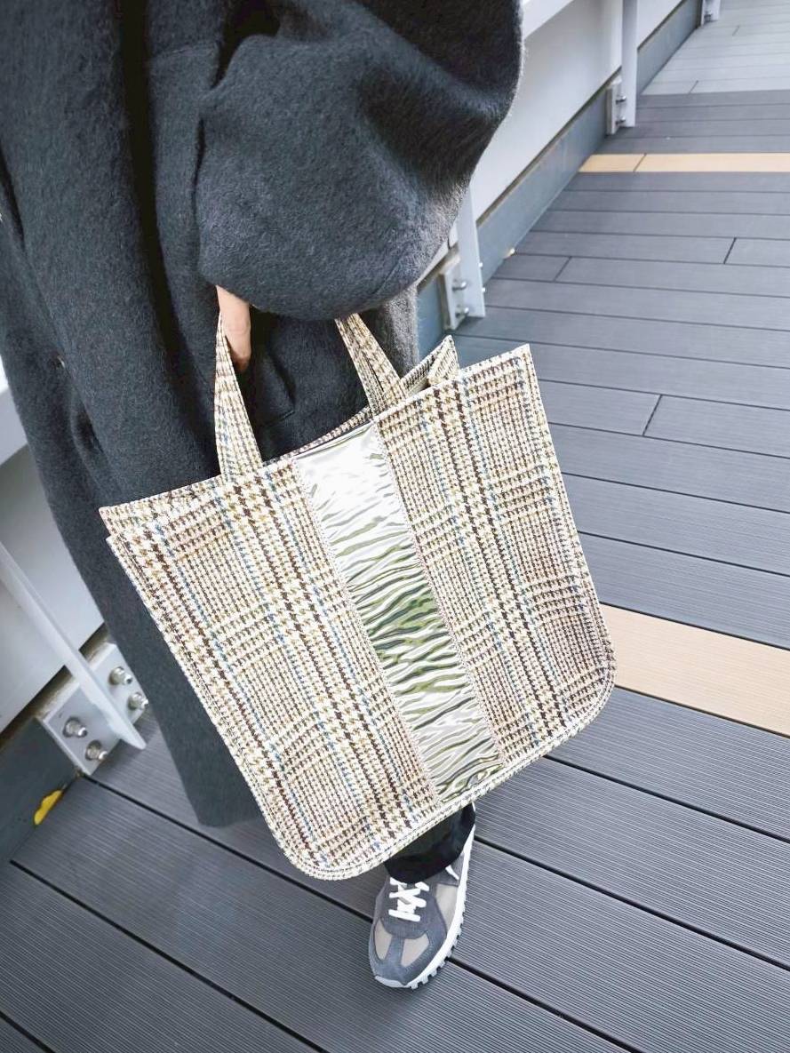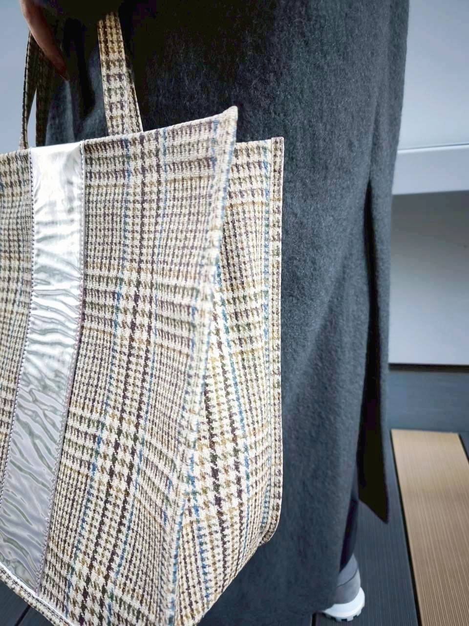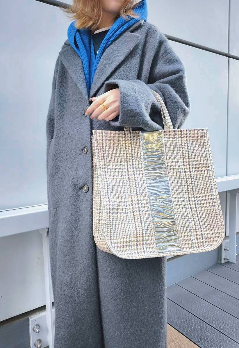 ツイード生地のように見えますが、実は合皮でつるっとした手触り。