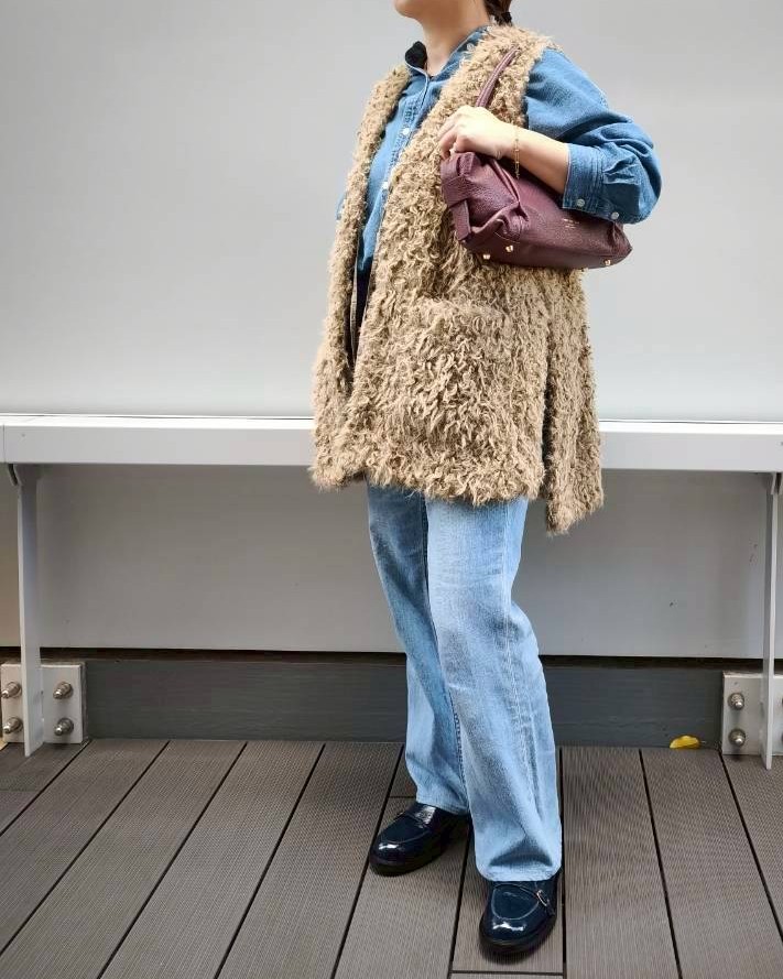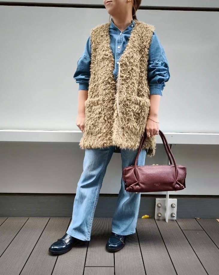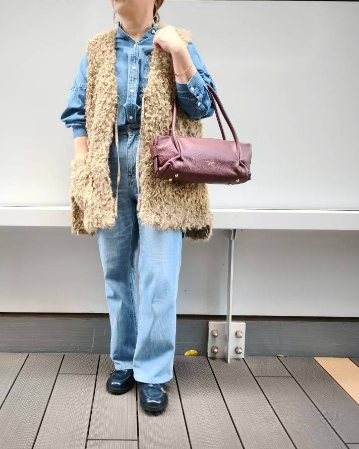 持ち手が長めなので、アウターを着ていてもしっかり肩がけ出来ます。