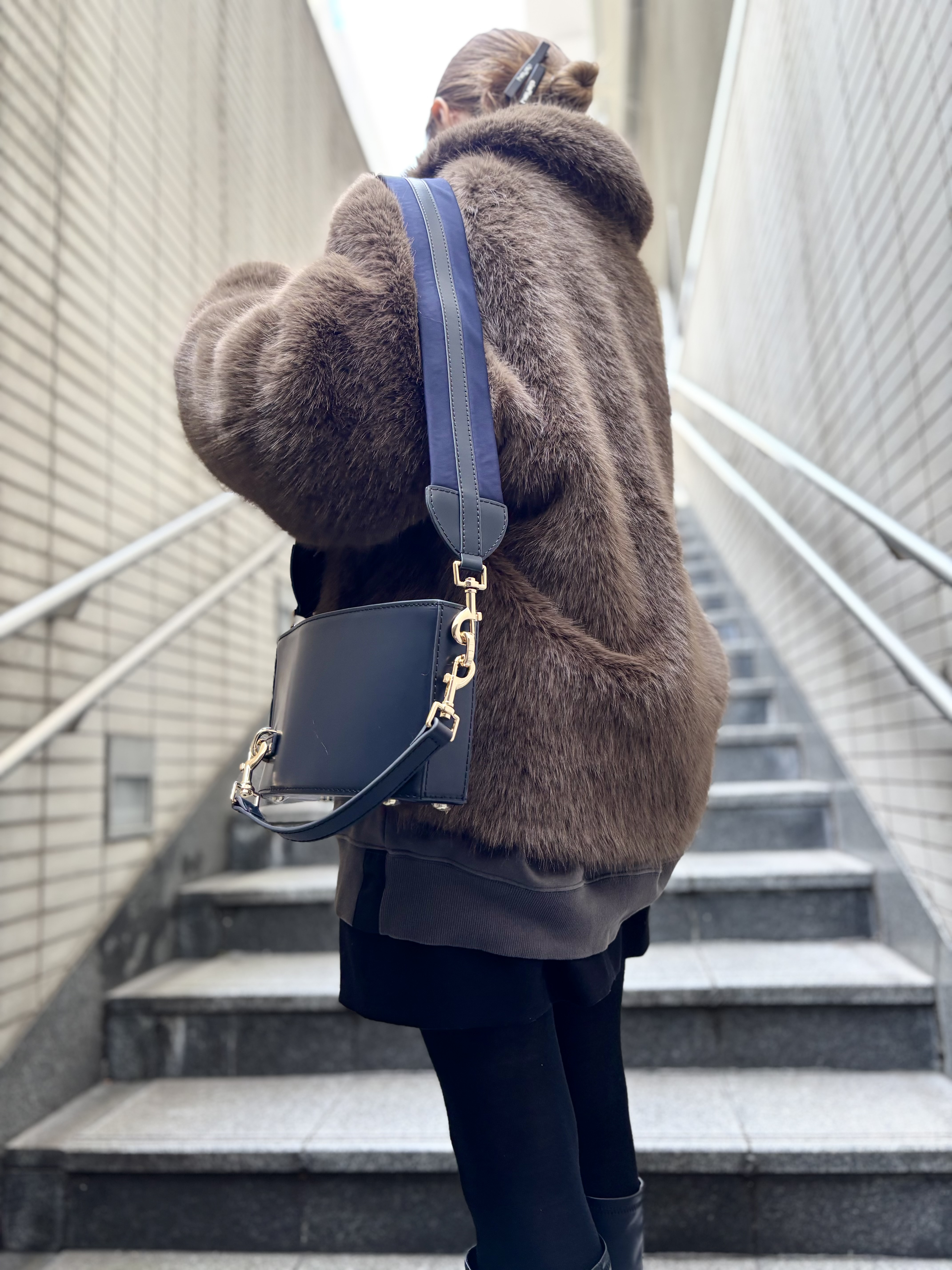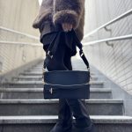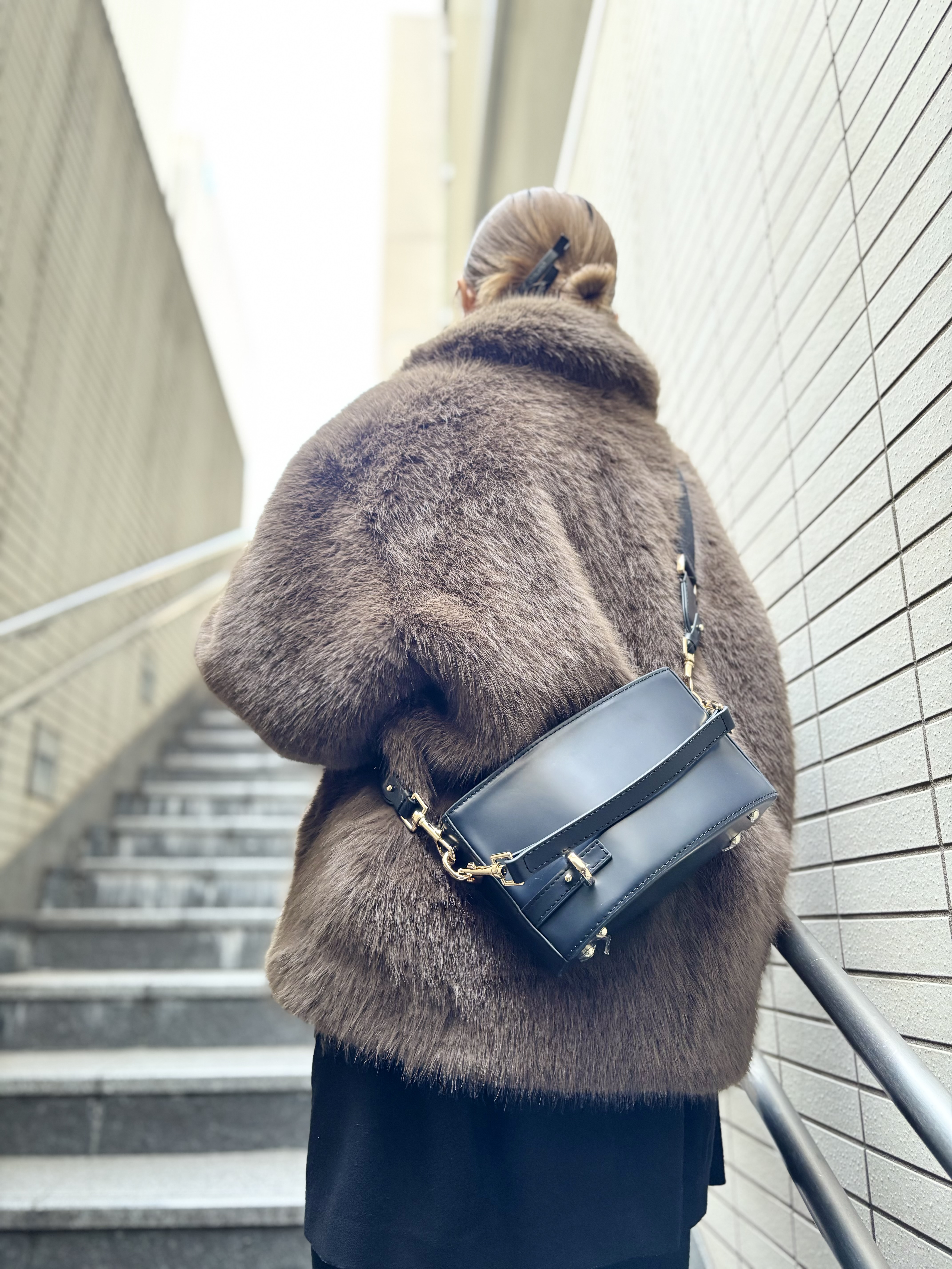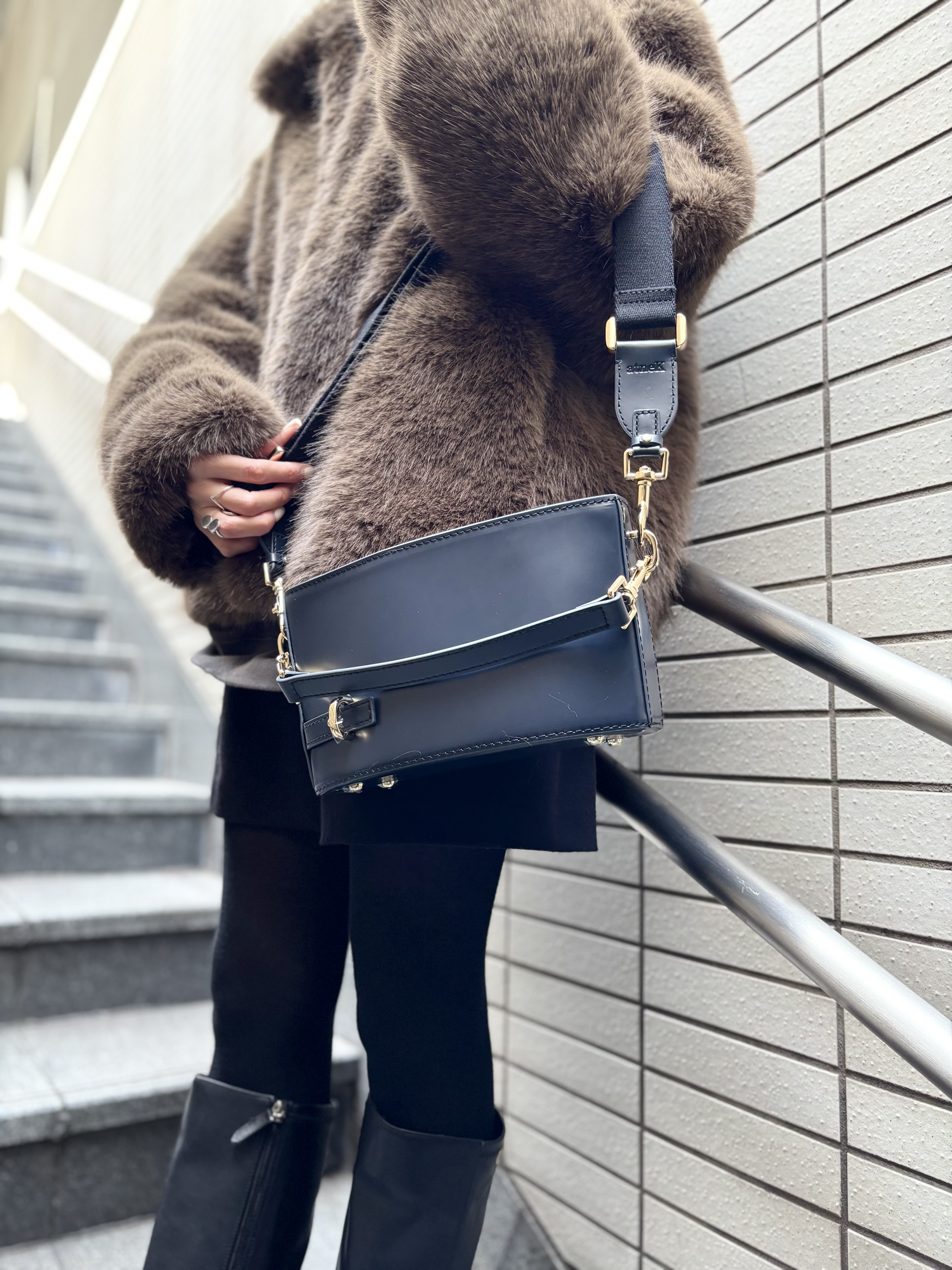 atneKの人気シリーズ、ネイビーのガラスレザーバッグの新作です。