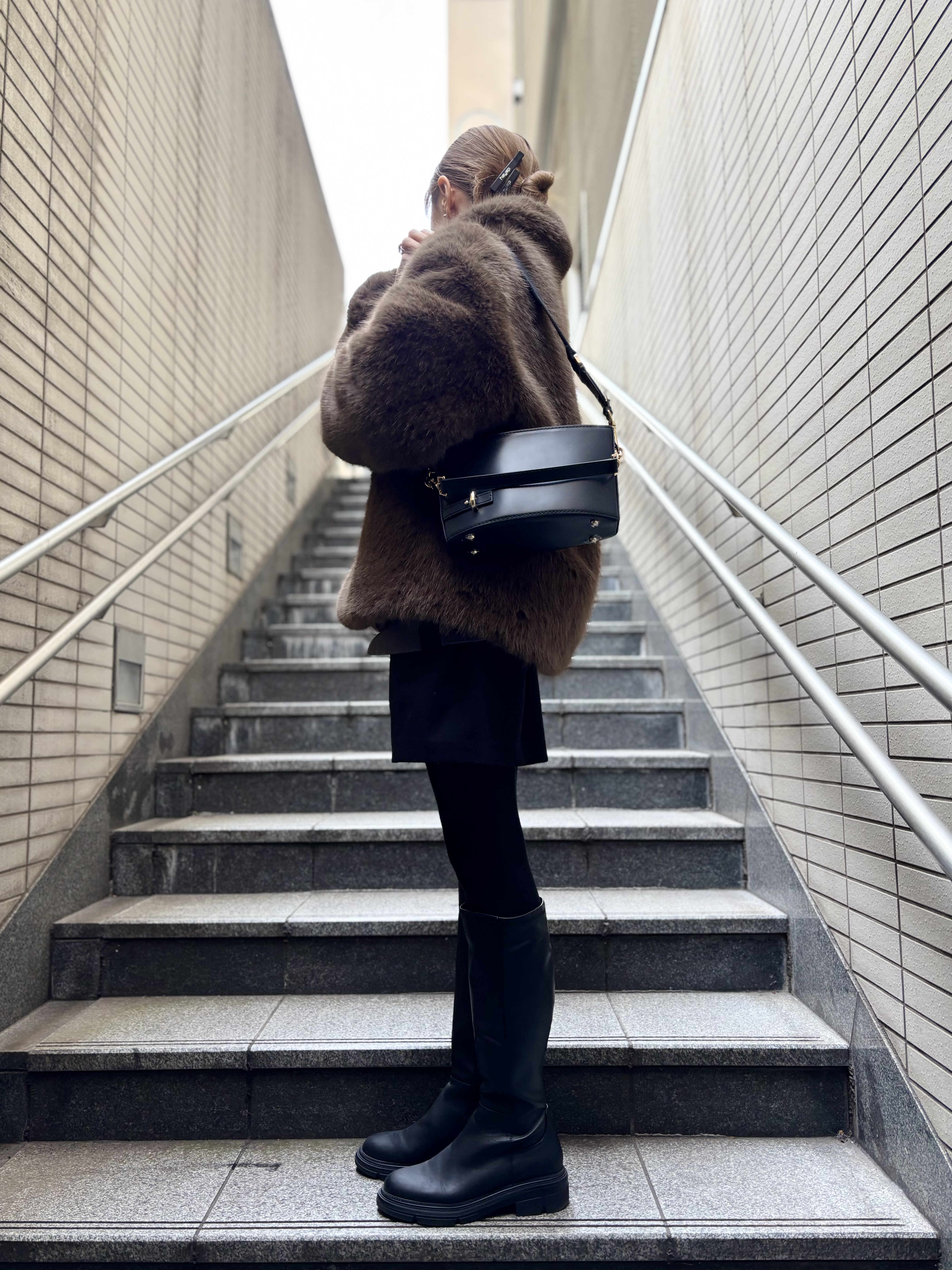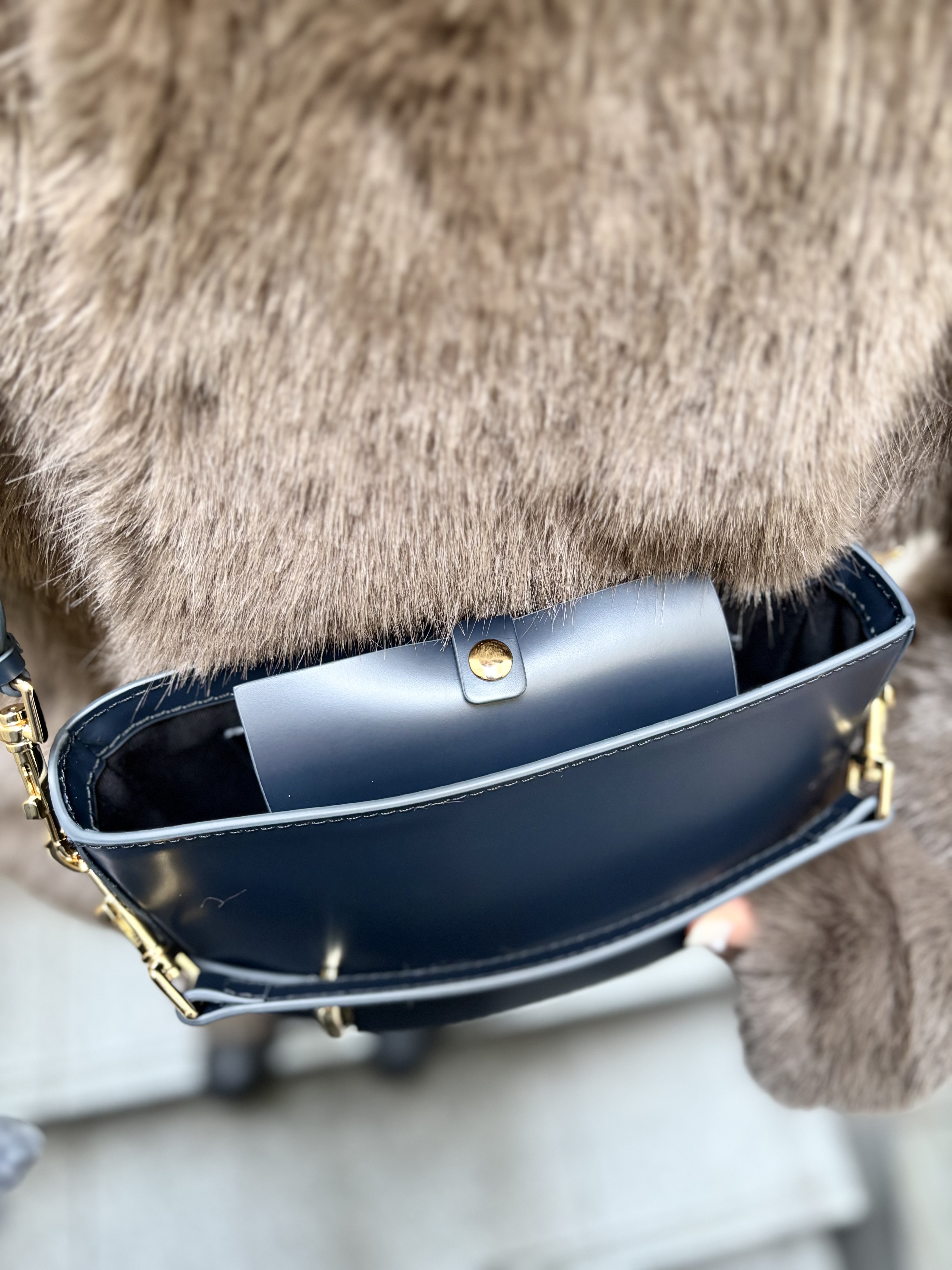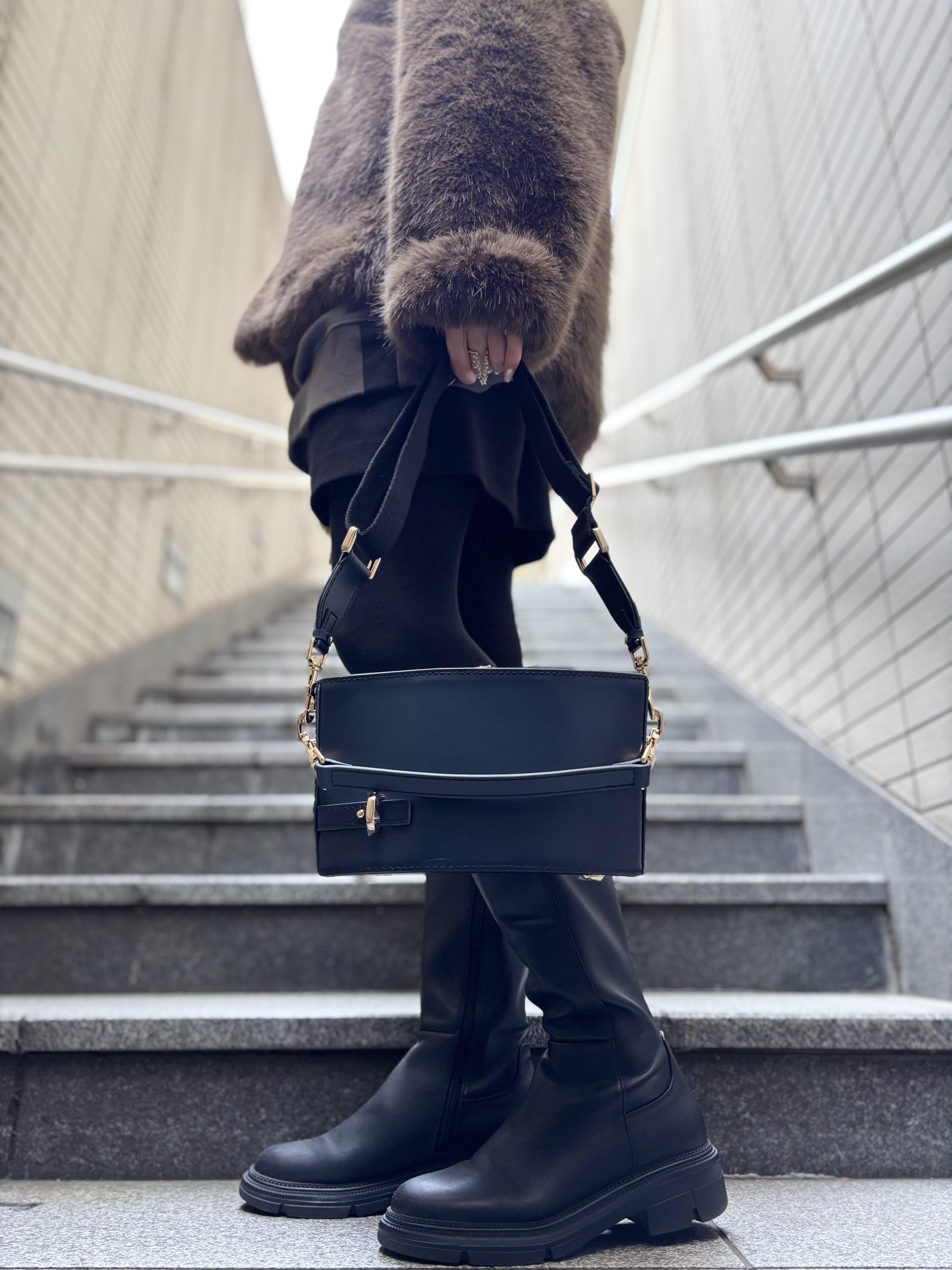 atneKの人気シリーズ、ネイビーのガラスレザーバッグの新作です。
