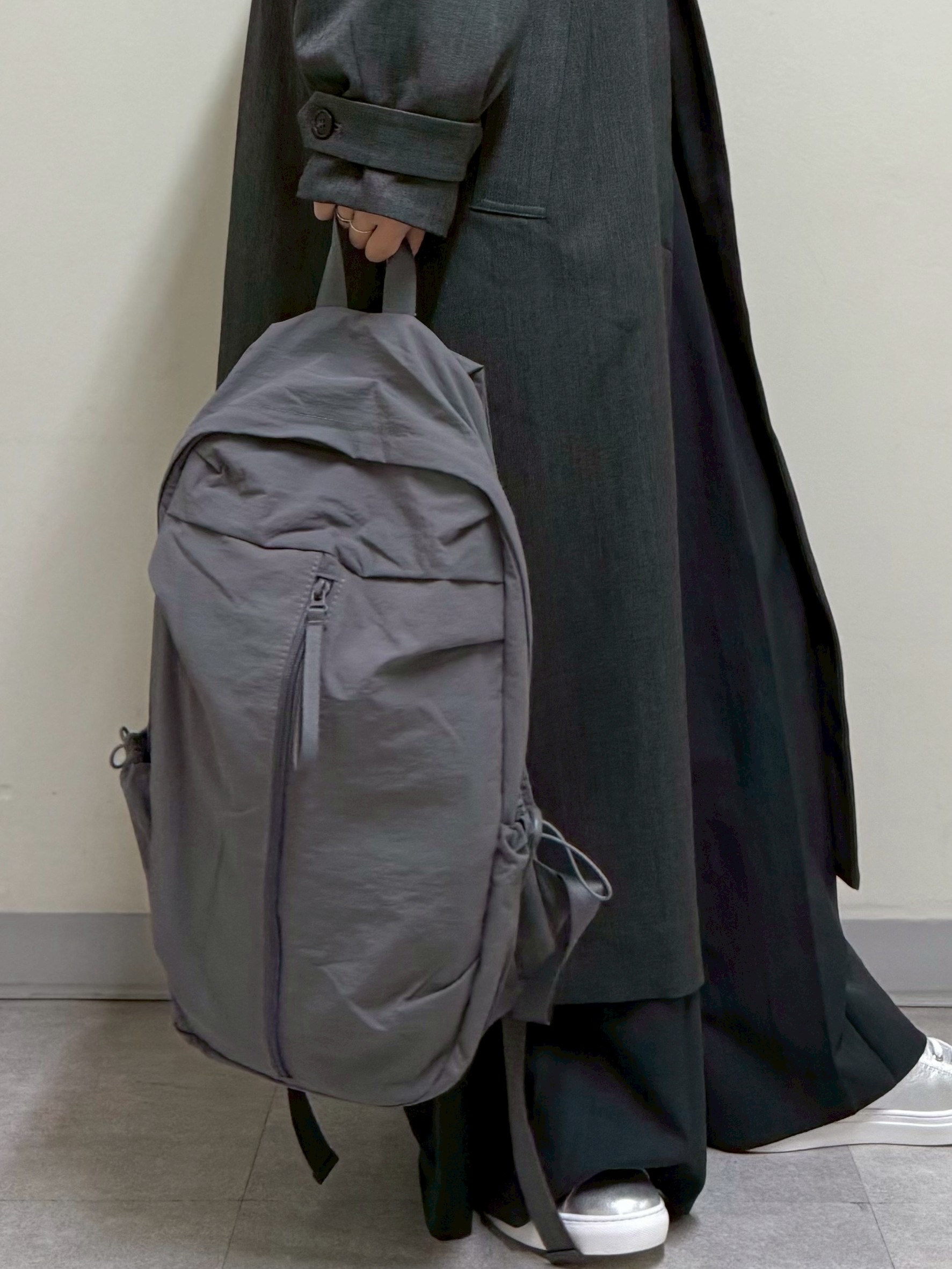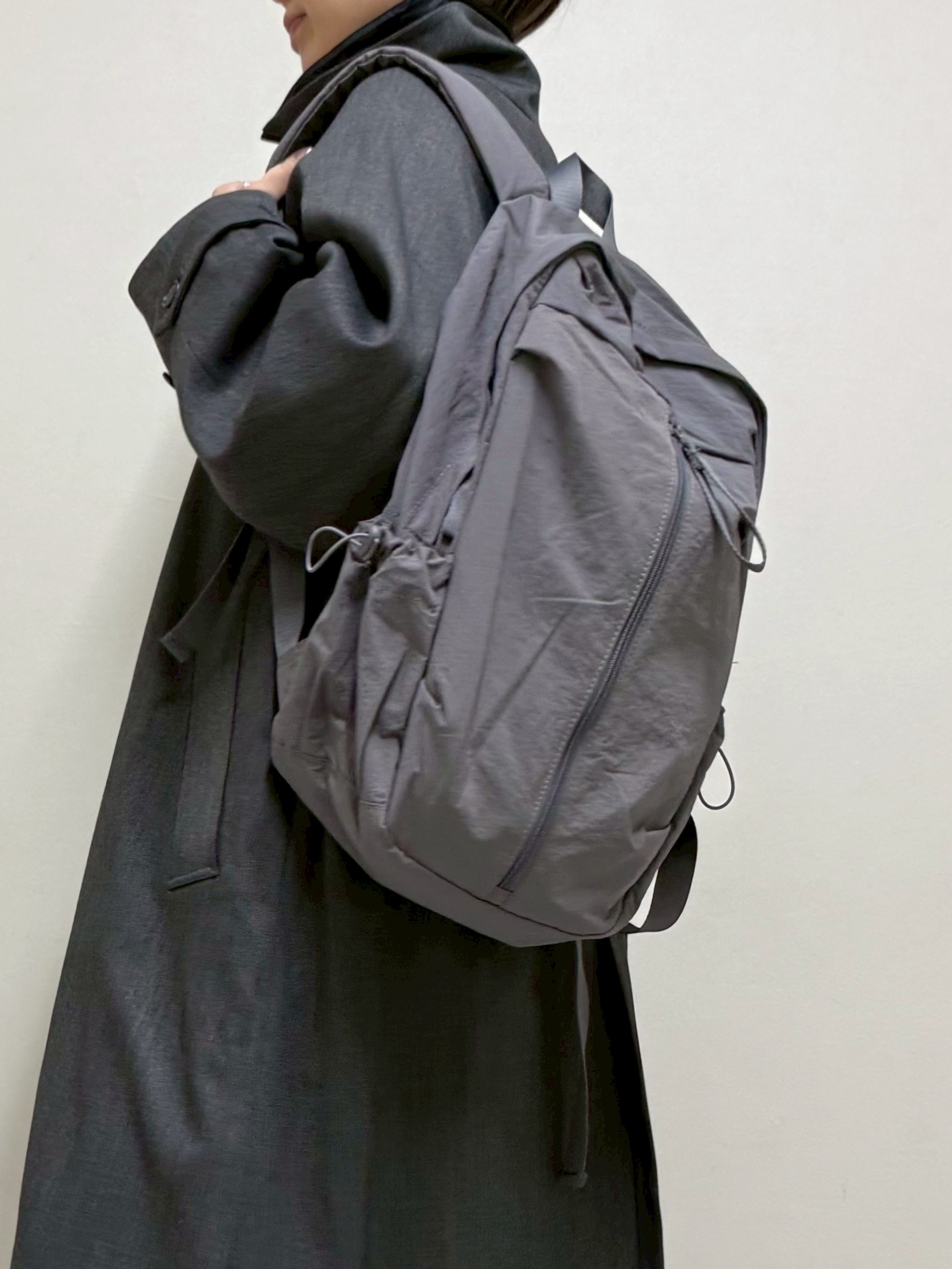 センタージップとサイドのドローコードがシンプルながらスタイリッシュに見せてくれます。