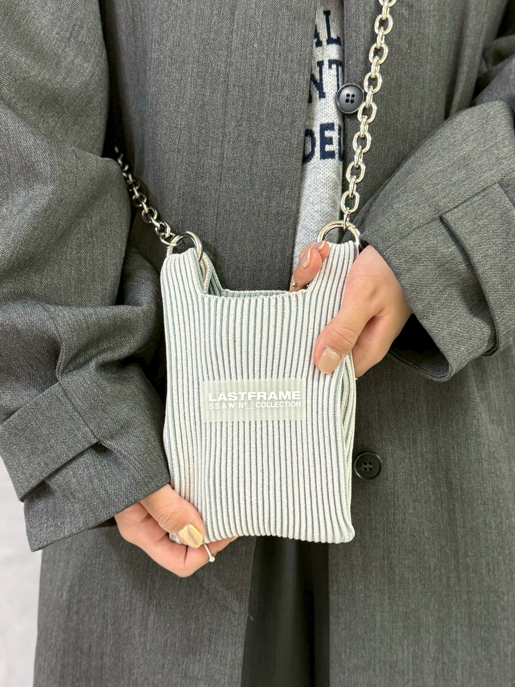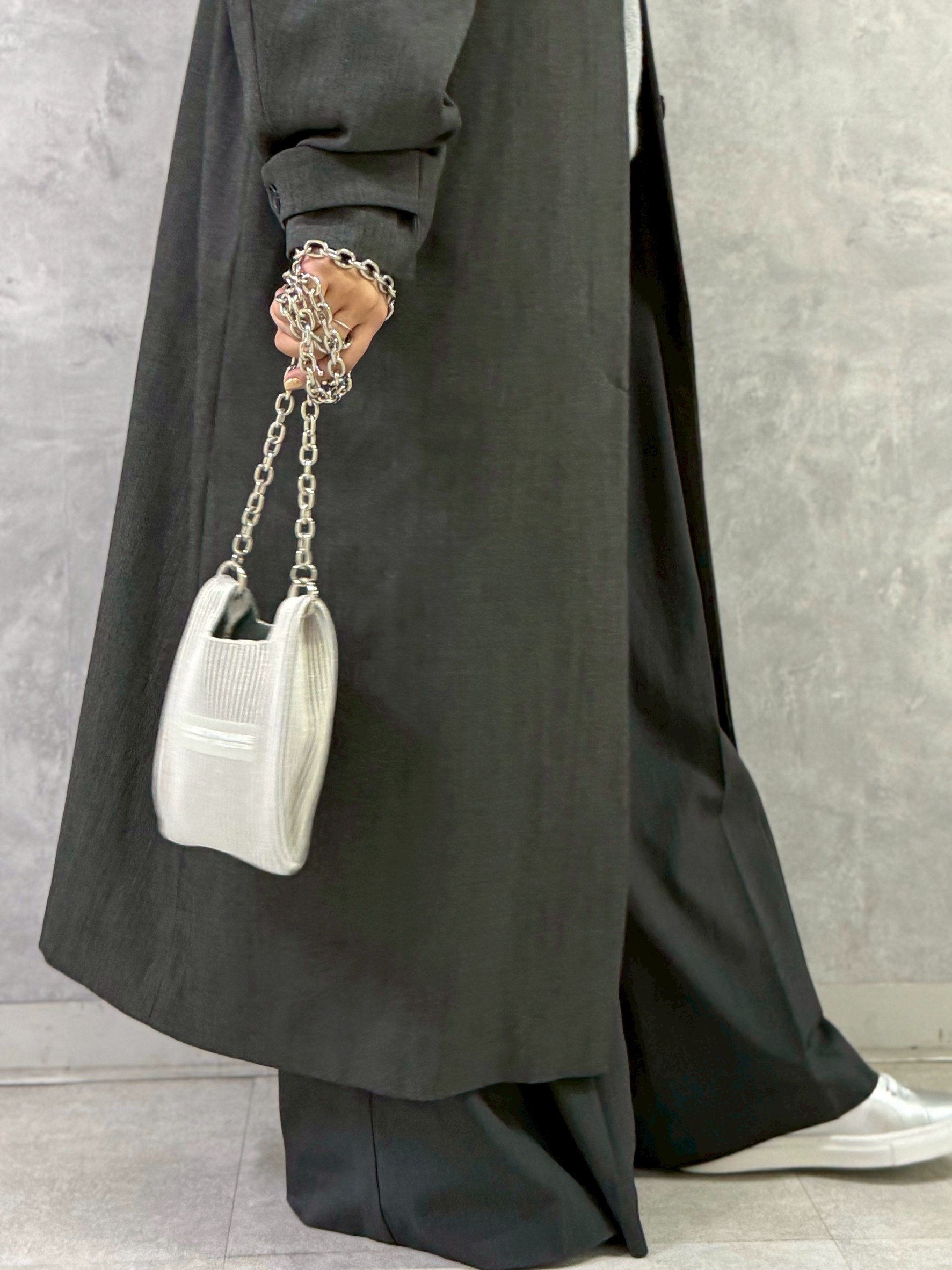 さりげなくコーデのポイントになるニット素材とチェーンショルダー。