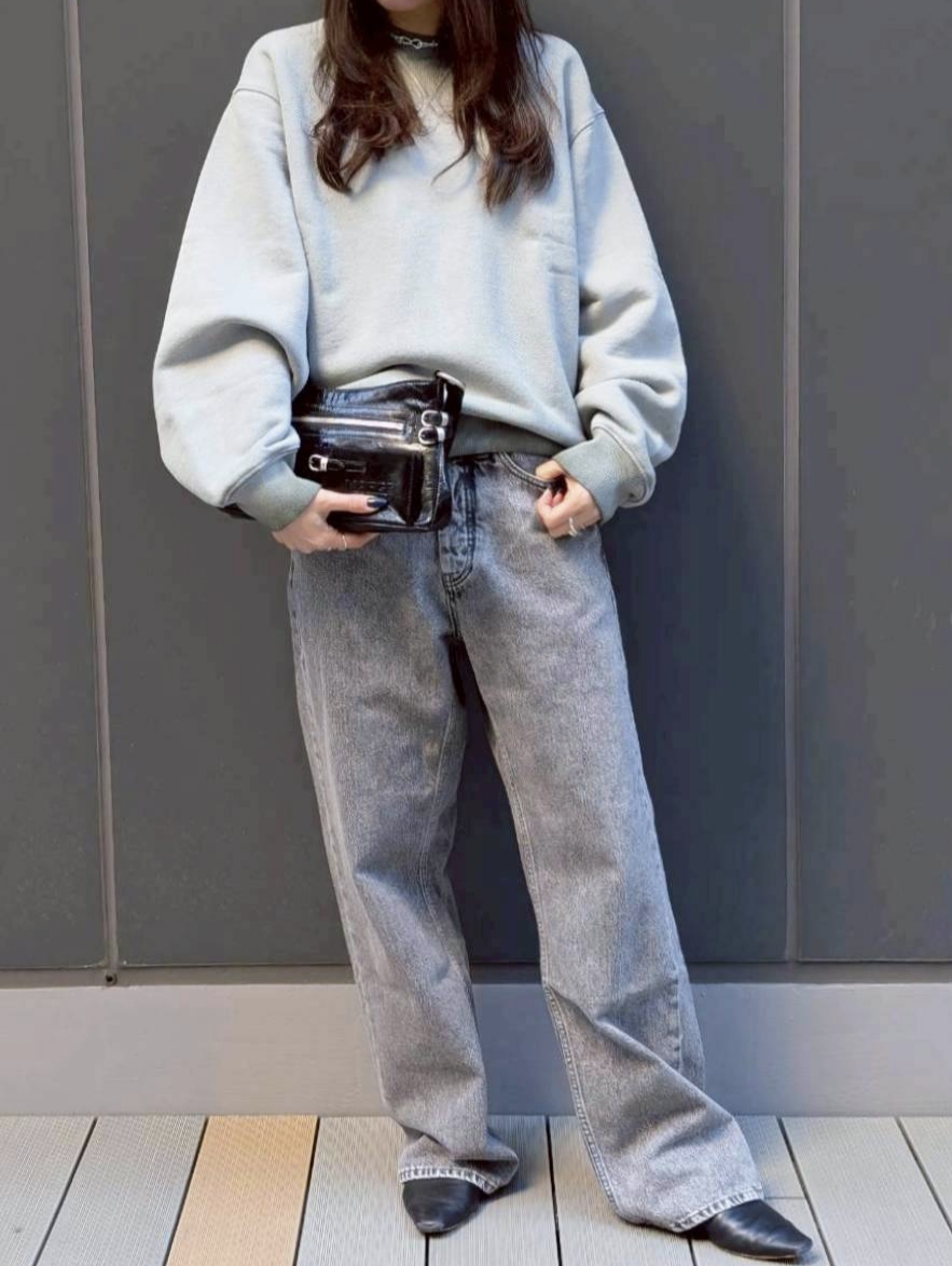 シンプルなコーディネートでも、こちらのバッグを合わせるだけでモードな仕上がりに。