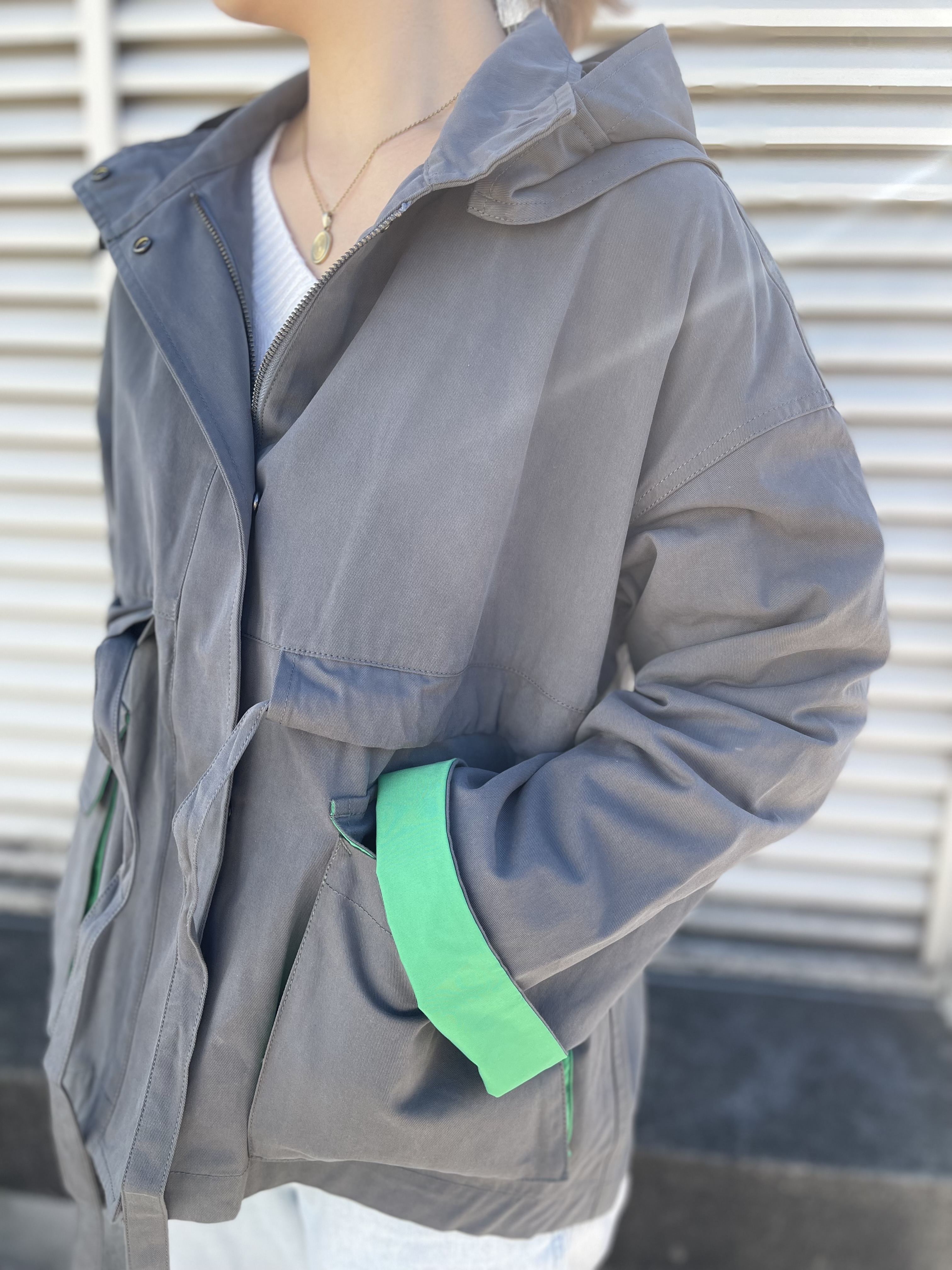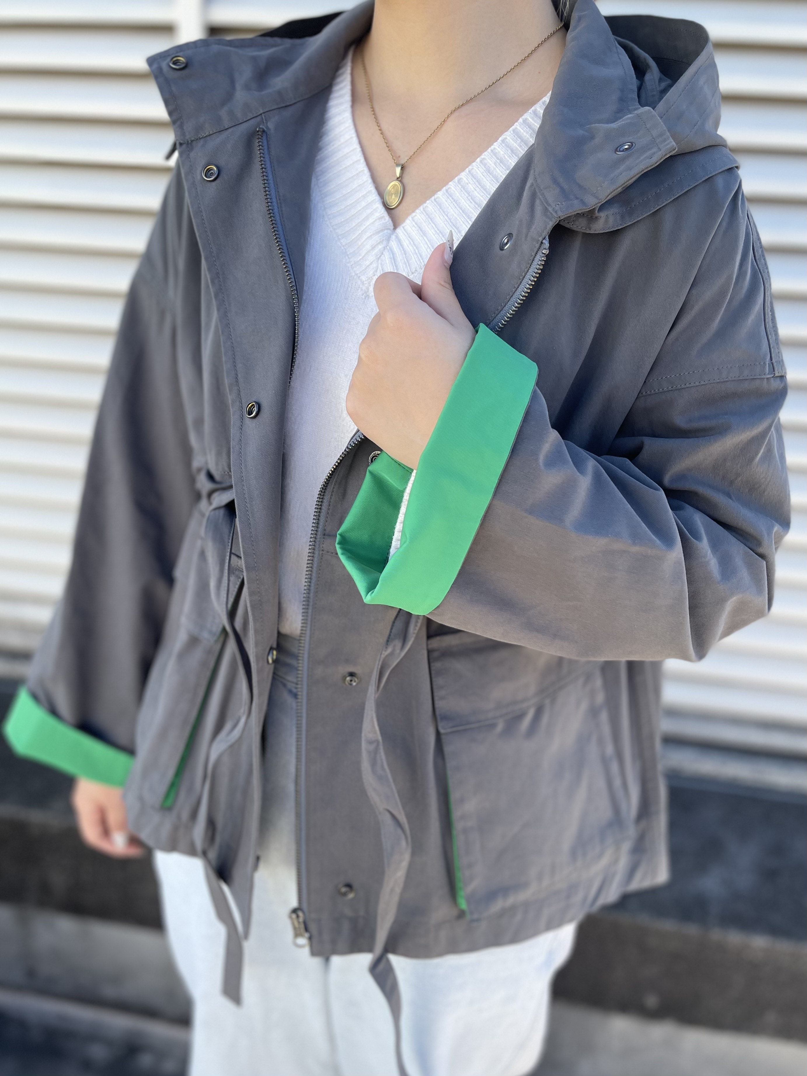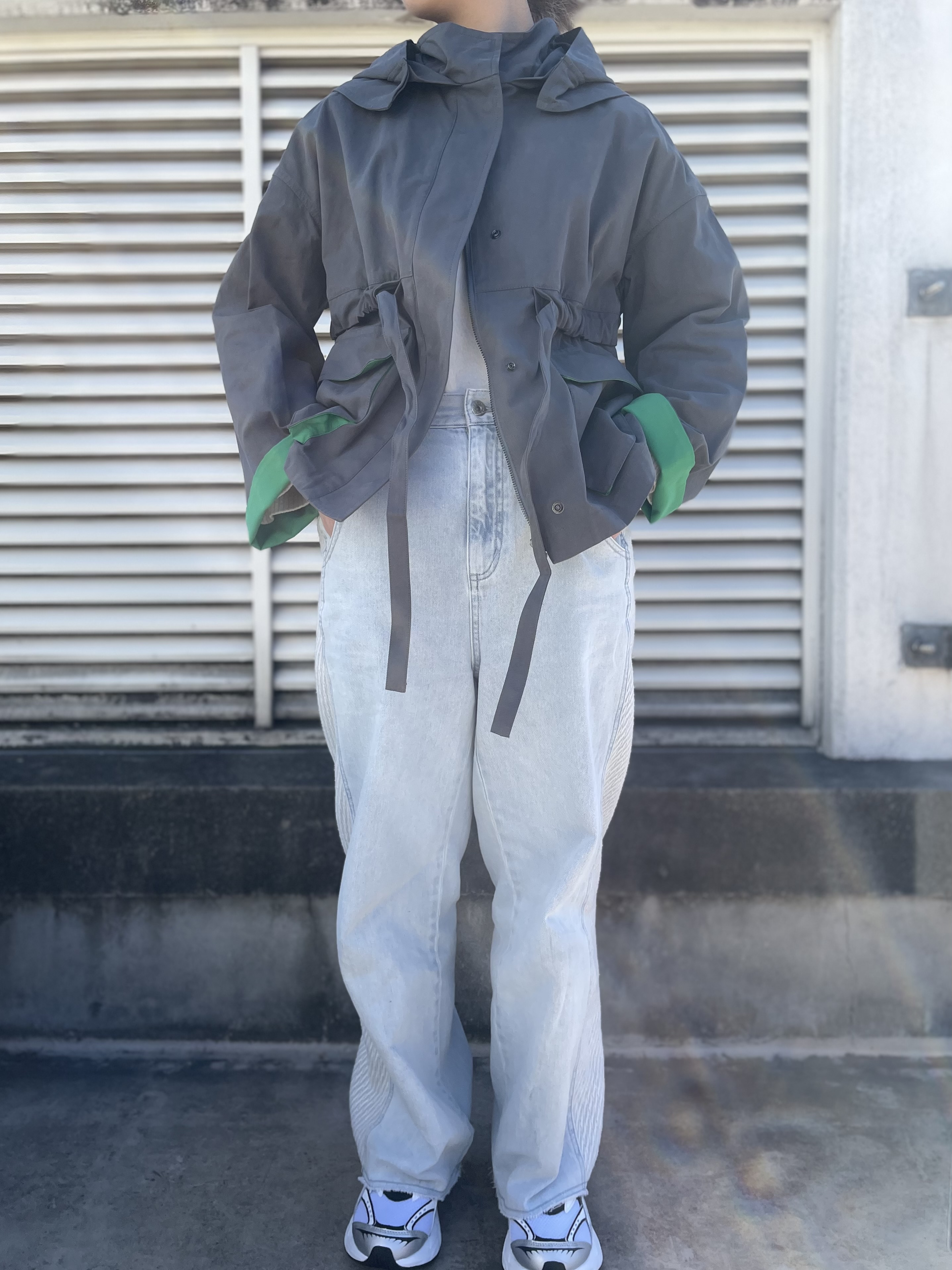 ミリタリーライクなポケット、立体的なシルエットとショート丈の軽さ、さりげなく効かせた配色。