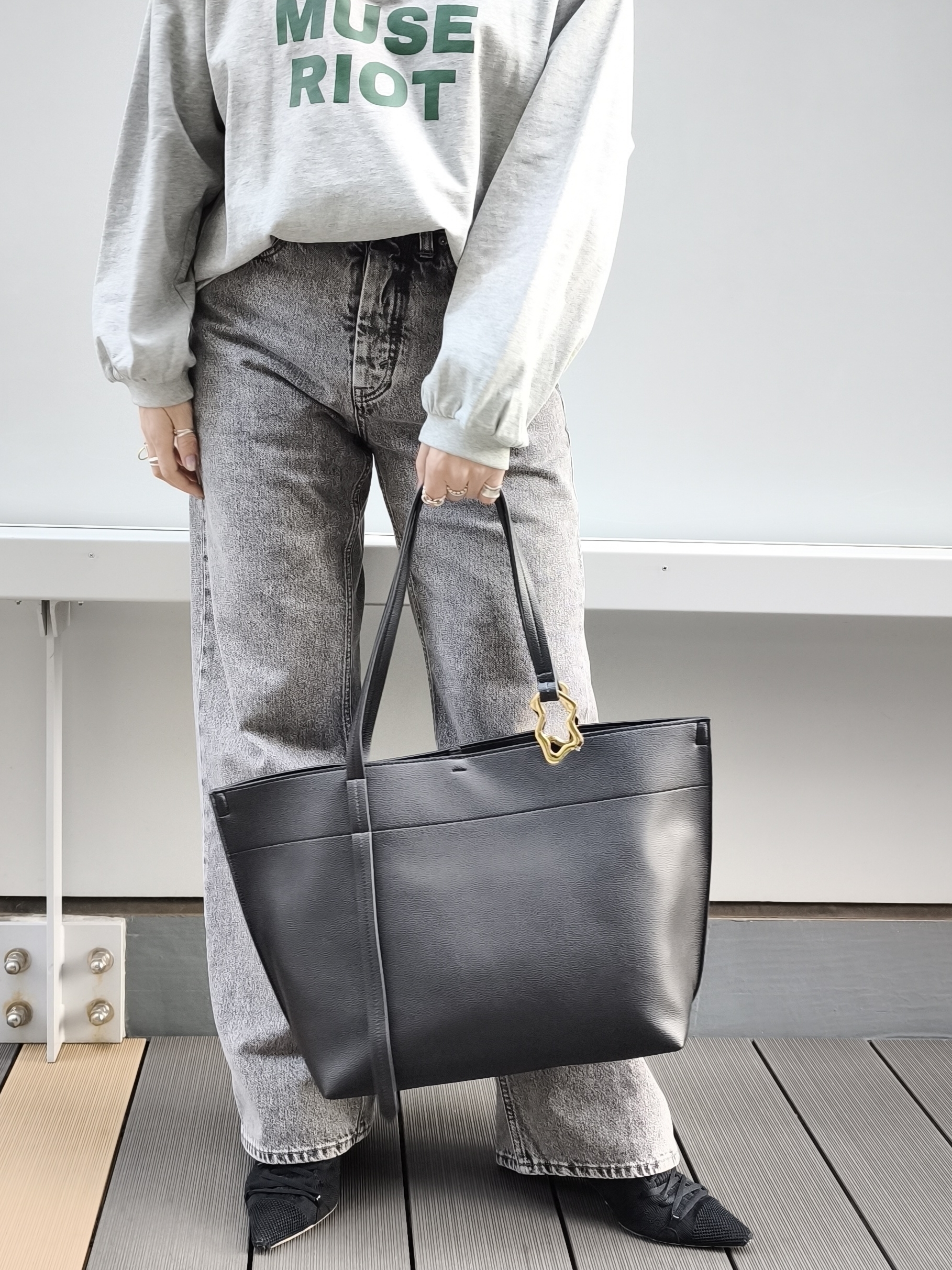 メタルパーツが特徴的なトートバッグが入荷いたしました。