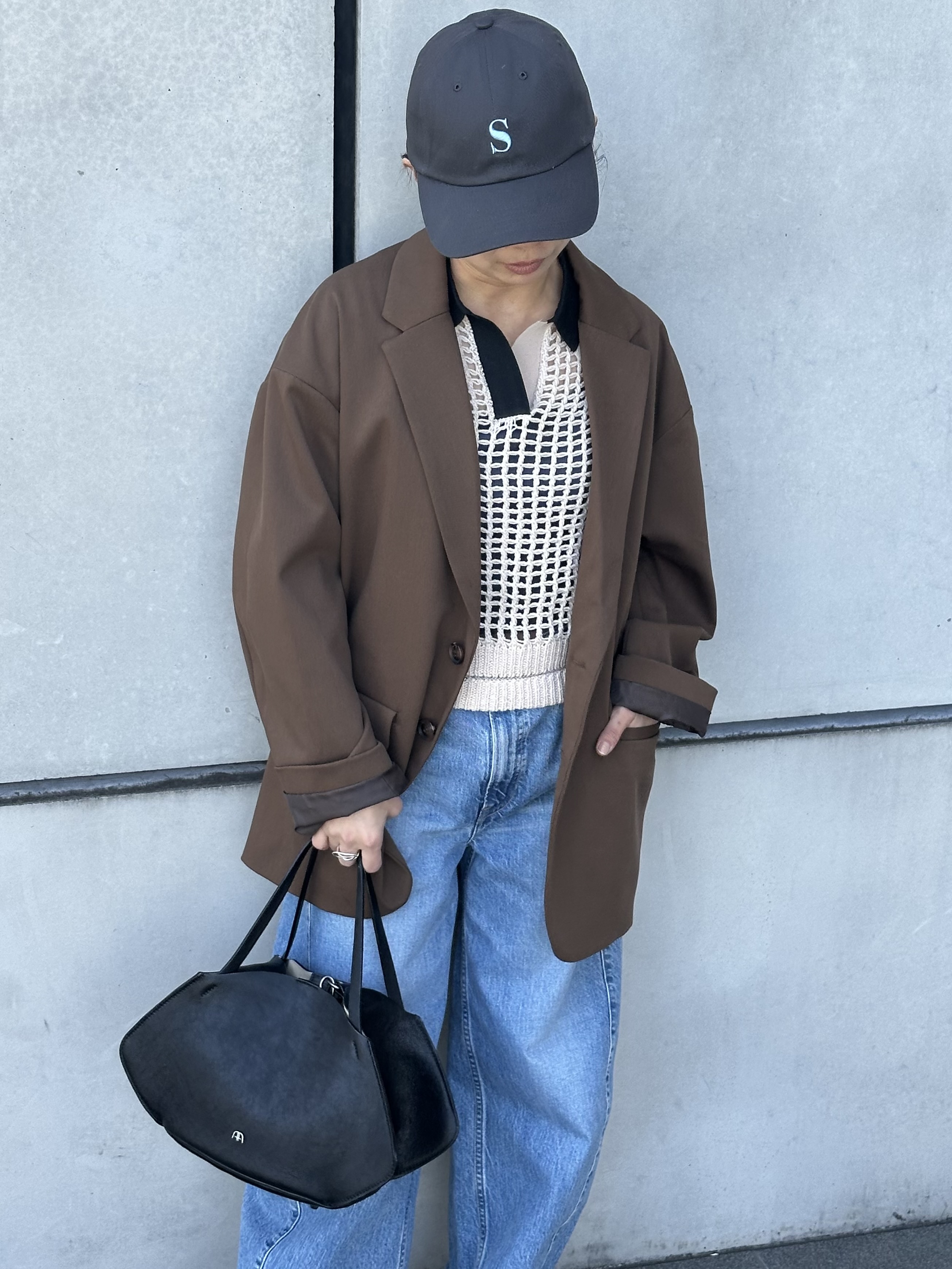 デニムスタイルにさらっと合わせるだけでも、ぐっと大人っぽい印象に。
