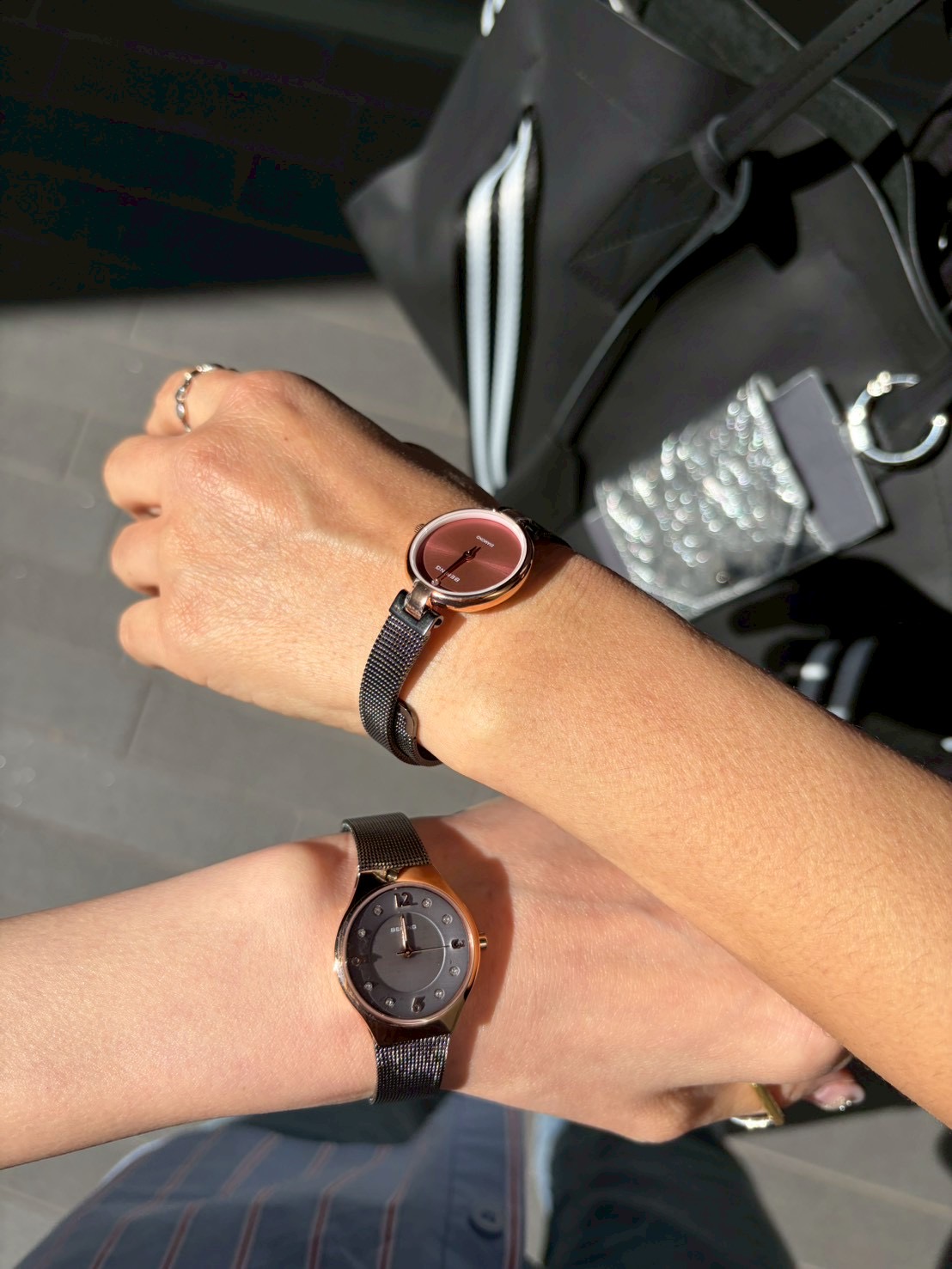コンパクトな文字盤と華奢なメッシュベルトが女性らしく、アクセサリー感覚で身につけられるデザインが魅力です。