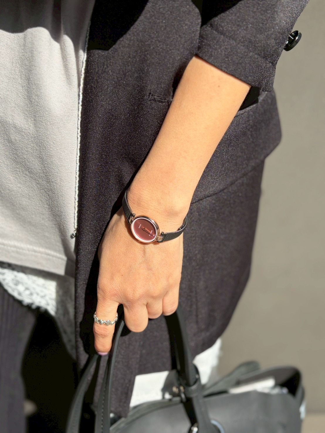 主張しすぎないミニマルなデザインは、カジュアルからきれいめまで幅広いスタイリングに自然と馴染んでくれます。