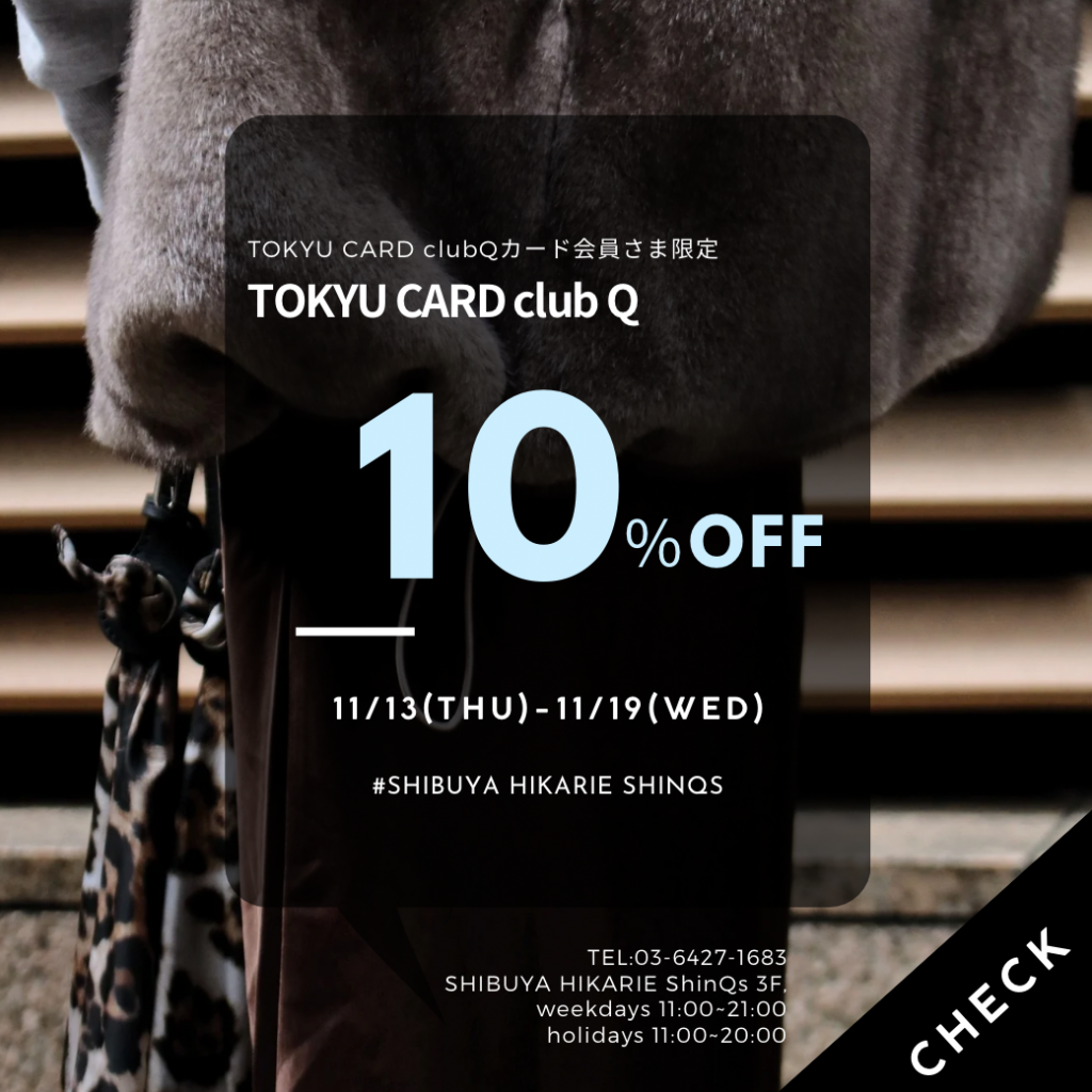 【告知解禁】渋谷ヒカリエ | 11/13~11/19”半期に一度の”10%OFF開催!! TOKYU clubQカード会員さま限定 10%OFF