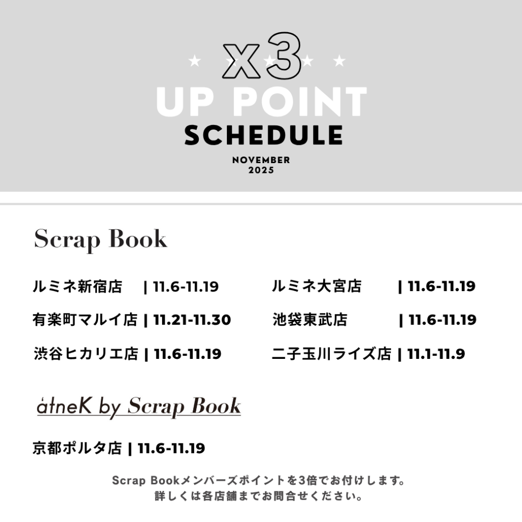 2025.10.31 \\11月 𝐄𝐯𝐞𝐧𝐭 𝐒𝐜𝐡𝐞𝐝𝐮𝐥𝐞 公開//Scrap Book各店舗のイベント情報はこちら