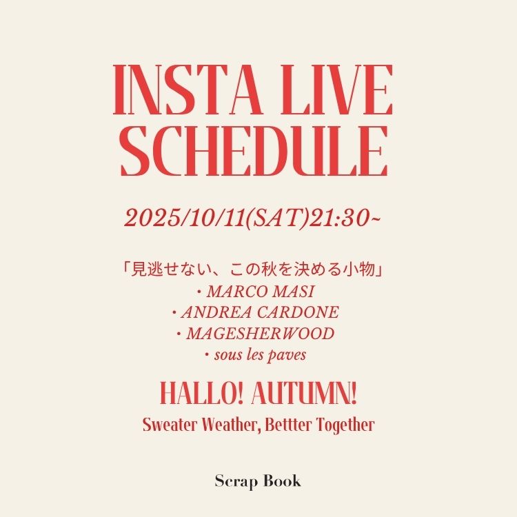 【インスタライブ告知】10/11(土)21:30~配信!「見逃せない、この秋を決める小物」